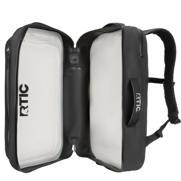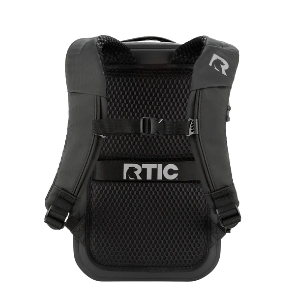 The ultimate waterproof travel bag, the RTIC Ultra-Dry Backpack combines heavy-duty adventure gear with everyday carry. With an IPX-6 waterproof rating*, the puncture and tear-resistant fabric, EZ zippers, and welded seams are watertight and weatherproof. Keep your gear organized with multiple storage pockets constructed with quick-drying mesh, including a padded laptop compartment. Easily pack with the open-book design and secure it with long zippers that create a waterproof seal when fully zipped into the dock. For maximum protection, apply pressure to the bag after zipping it closed and ensure no air escapes. Comfortably carry with the padded adjustable straps and open-mesh back panel. Ready for travel, this bag has a built-in luggage strap for rolling suitcases and fits under most plane seats.