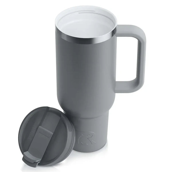 Combining the smooth taste of ceramic and durable stainless steel body, the RTIC Road Trip Tumbler is the most unique travel tumbler to hit the market. The ceramic-lined interior provides a clean, non-metallic taste, won’t absorb any flavors like your coffee or tea and is easy to clean. The multi-function allows for two drink settings, open mouth or with a straw. When finished, close the locking tab or remove the straw for leak-resistant transportation. The comfortable handle makes it easy to carry with you anywhere and always have hydration in reach.