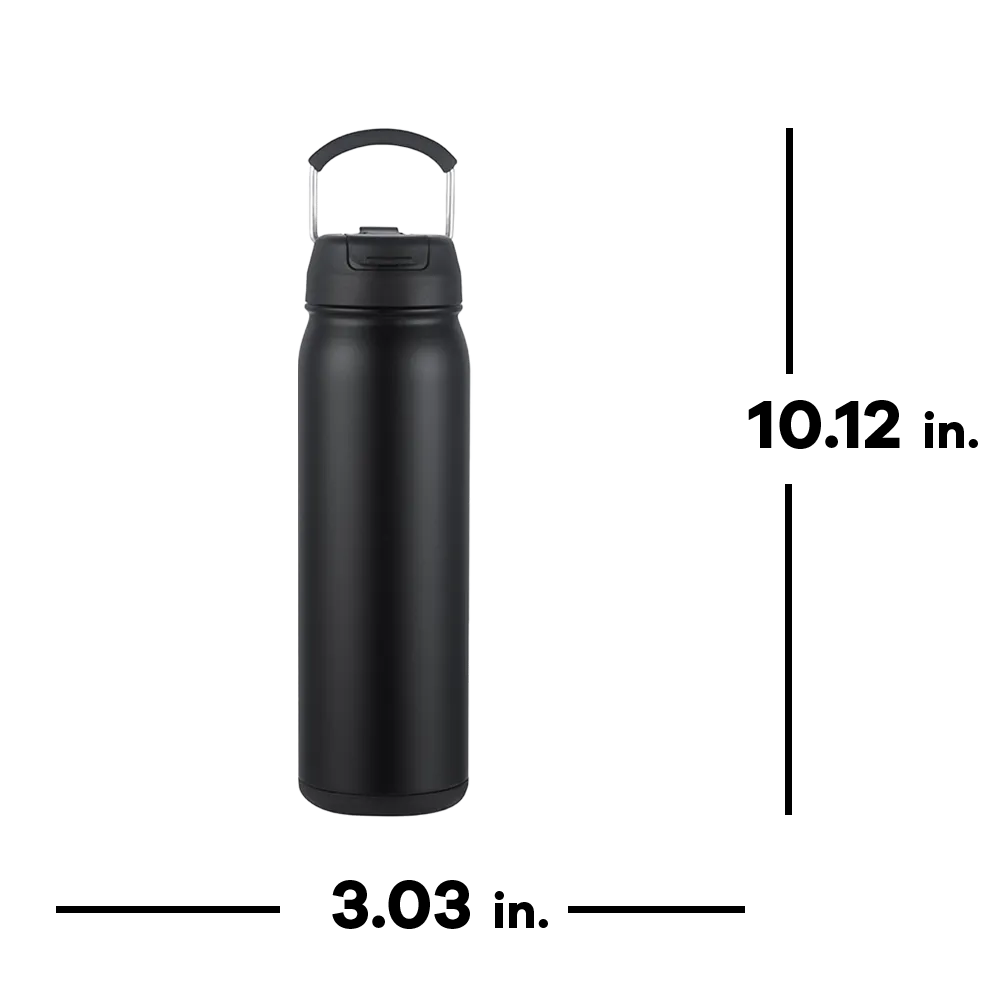 Upgrade your promotional lineup with an exceptional office-ready staple. This Slate 24 oz Vacuum Bottle is a highly adaptable, double-walled partner. Crafted with a premium 304 stainless steel interior and a durable 201 stainless steel outer layer, it uses advanced stainless steel and vacuum Insulation to keep beverages hot for 12 hours and cold for 24 hours. With an easy-carry handle, a versatile dual-use lid, and an innovative twist-open bottom, all enveloped in a robust PFAS-free powder coating finish, this combination solidifies the bottle as dependable supplier-grade drinkware. Whether your executives are moving between important client meetings or collaborating around the conference table, this design provides unmatched daily convenience and scalable brand visibility. To ensure the long-term brilliance of the finish and keep it pristine for years of use, hand-washing is recommended.